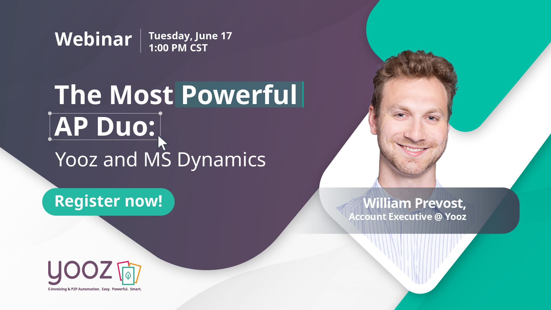 AP Automation expert, William Prevost, will take you through the Yooz platform and demonstrate how it is the ultimate pairing with your MS Dynamics ERP for maximum value. Have data effortlessly flow between your Dynamics ERP and the most advanced purchase-to-payment (P2P) automation solution on the market.