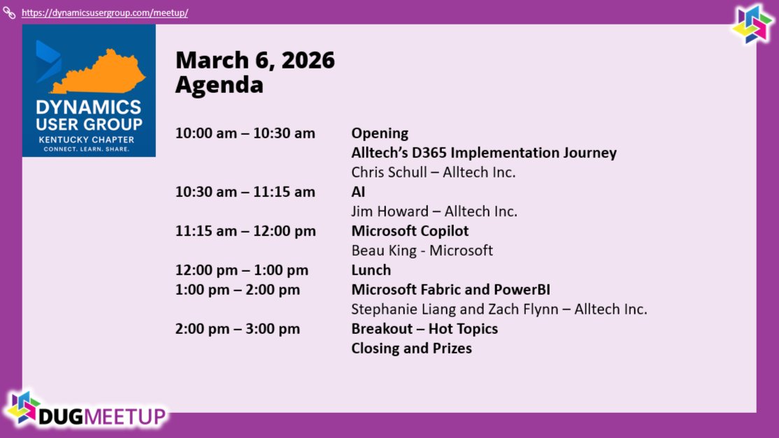 • Dynamics User Group Kentucky Chapter Meeting – March 2026